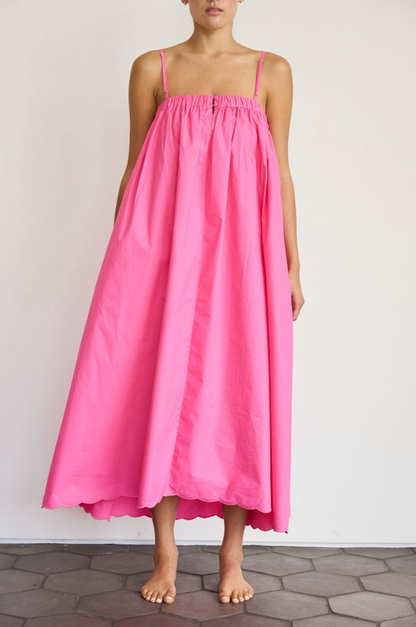 Brazeau Scallop Edge 100% Cotton Midi Dress with Pockets