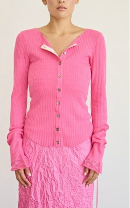 Brazeau Vintage Detailed Scoop Neck Cardigan - Bubblegum Pink