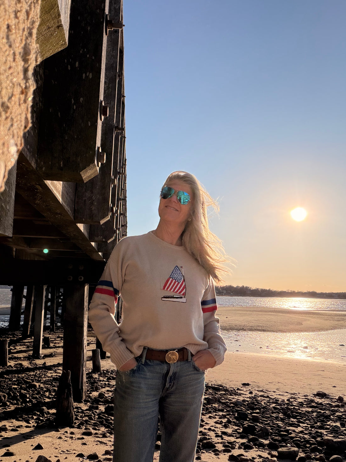 REMY 100% Premium Cashmere Nantucket USA Sailboat Sweater - Khaki