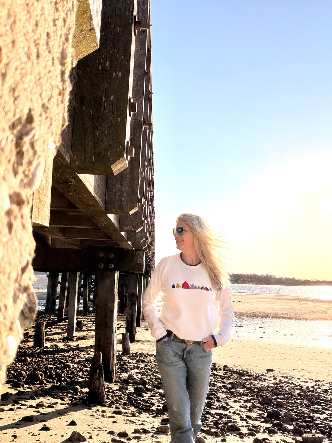 REMY 100% Premium Cashmere Nantucket Rainbow Fleet Sweater - Cream