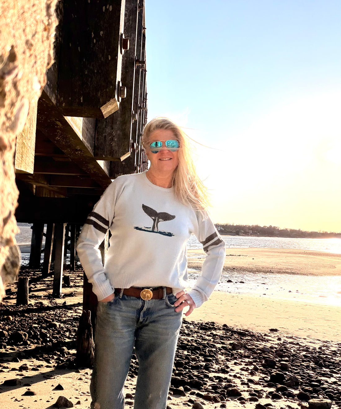 REMY 100% Premium Cashmere Nantucket Whale tail Sweater - Icy Blue