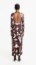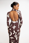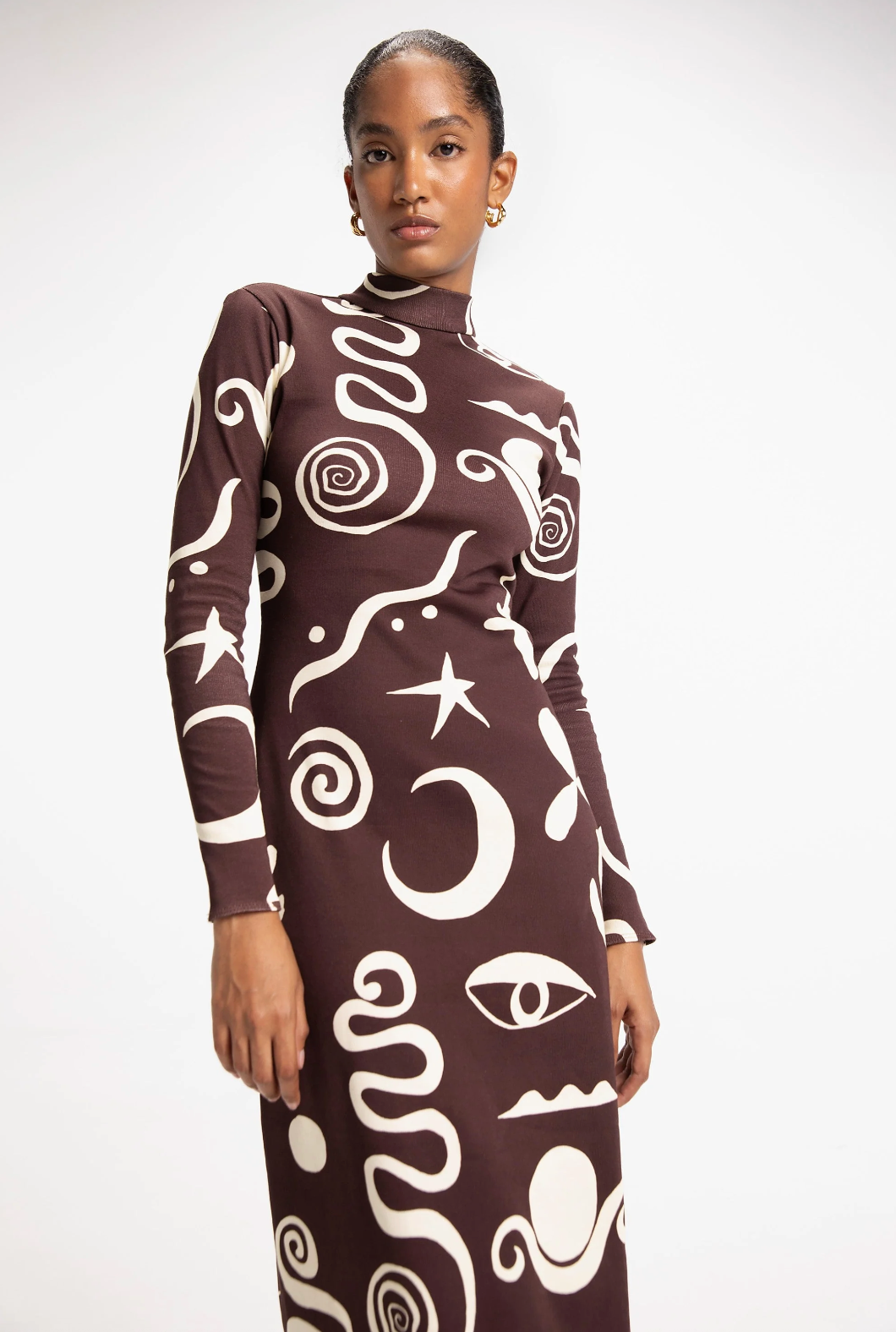 The dress that is right to take you stylishly into fall with a cognac background, the print is exciting and eye catching. Soft in 100% organic cotton - it's just right with your favorite boots, flats or sexy heals.