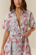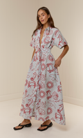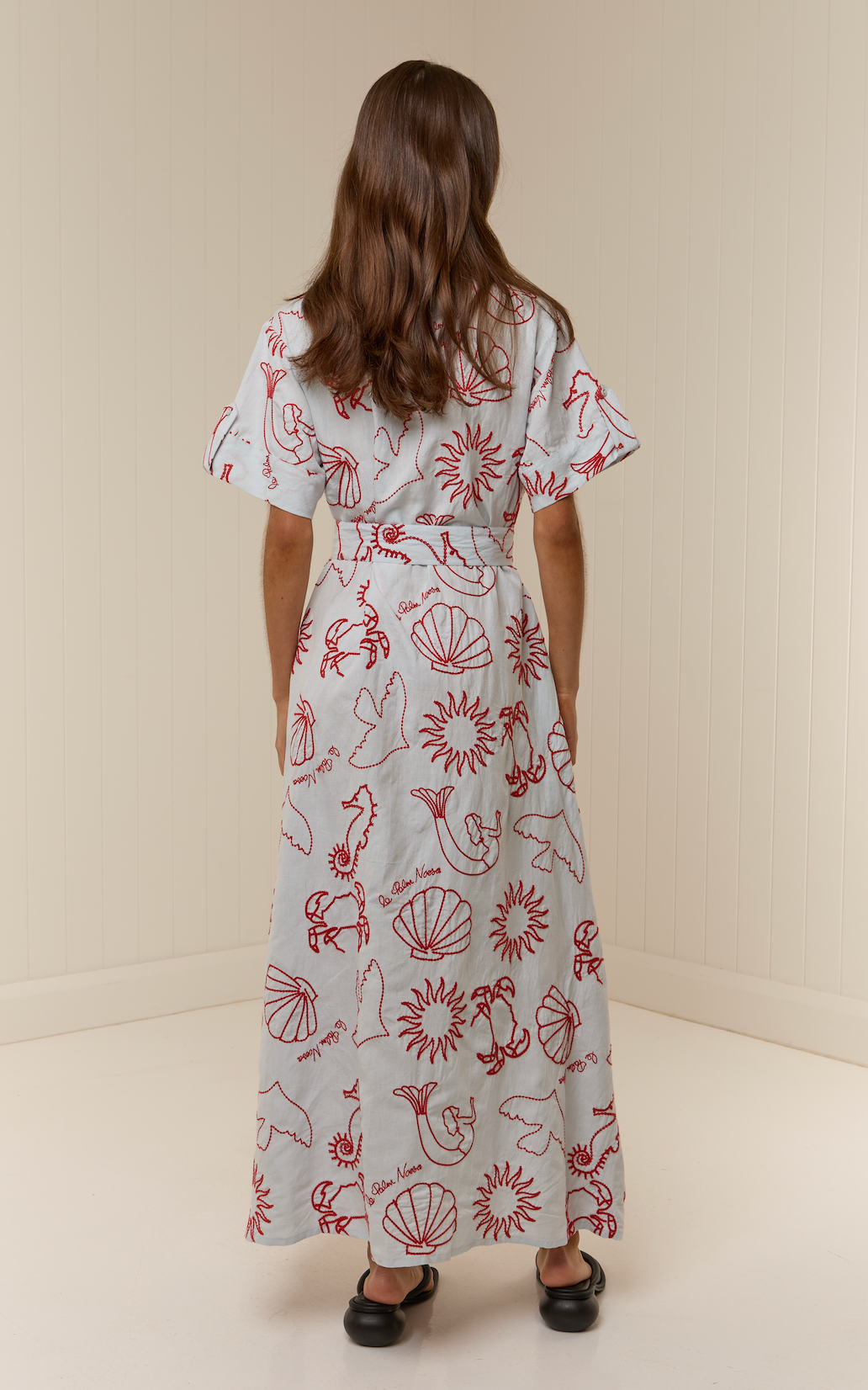 The Tolken Dress is crafted from a premium Cotton Linen blend, printed in the exclusive Le Palm print. The Tolken Dress features an all-over contrast embroidery detailing and is designed as a relaxed fit, featuring cuffed sleeves and centre front button detailing. Style with a matching D-ring belt to cinch the waist and create a relaxed yet elevated look.
