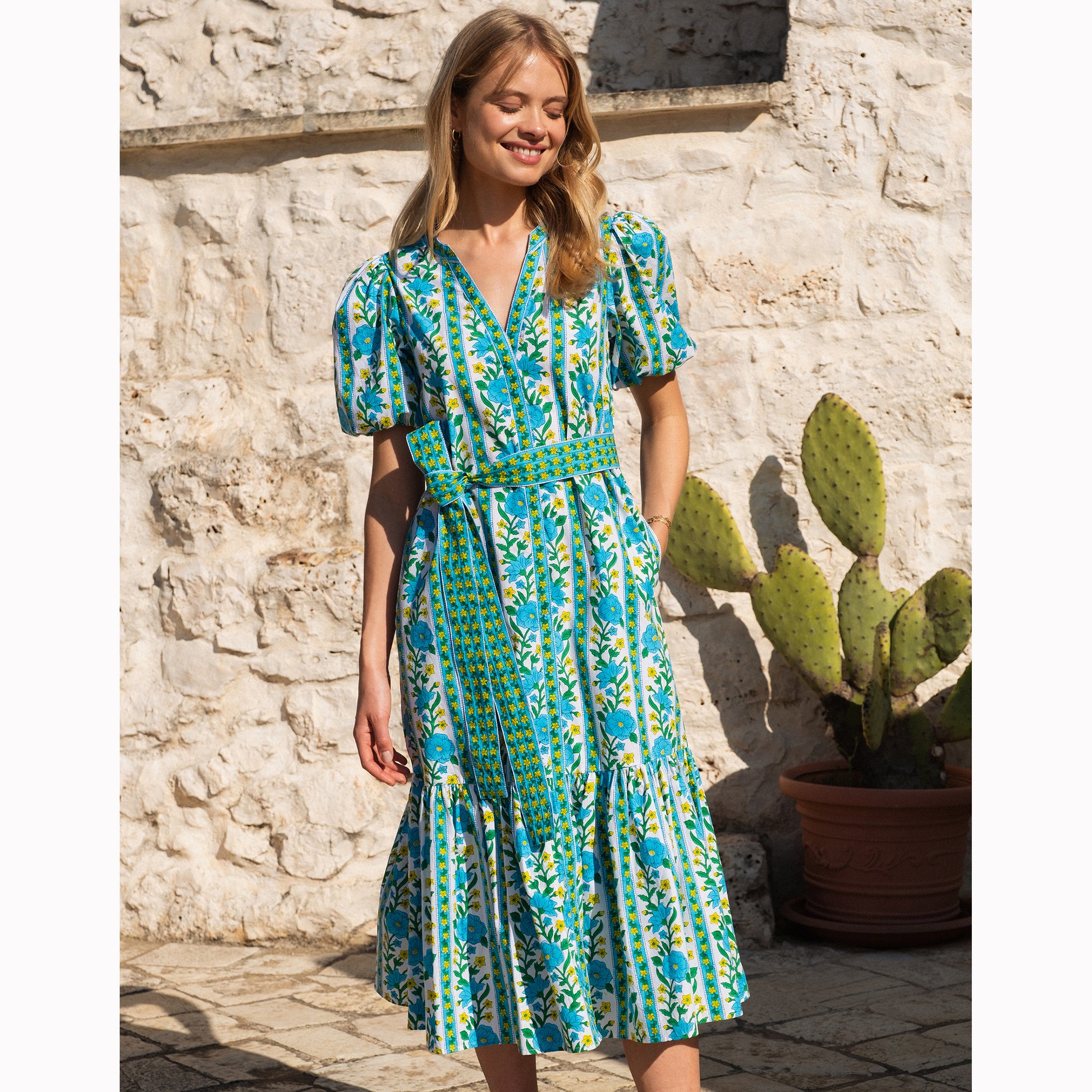 A breezy, effortless piece designed for ultimate versatility. Hand block-printed on organic cotton in our striking Hibiscus Border print, it features a relaxed, waistless silhouette with a full button-down front, V-neckline, and soft elasticated sleeves. Wear it loose for a laid-back feel or cinch it with the optional belt for added shape.