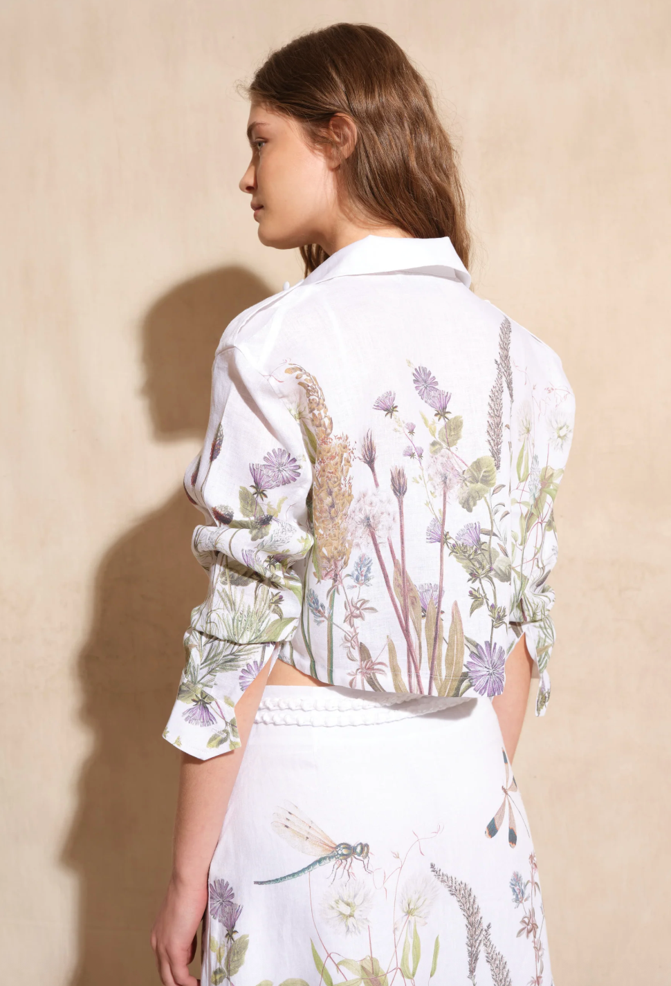 Elevate your seasonal wardrobe with the Solange Floral Linen Cropped Jacket. Crafted from premium, breathable linen, this lightweight piece features a stunning wrap-around botanical print and a clean, tailored silhouette. Designed for the modern woman, it offers a refined yet relaxed fit that drapes effortlessly over casual daywear or elegant evening outfits for a touch of understated sophistication.